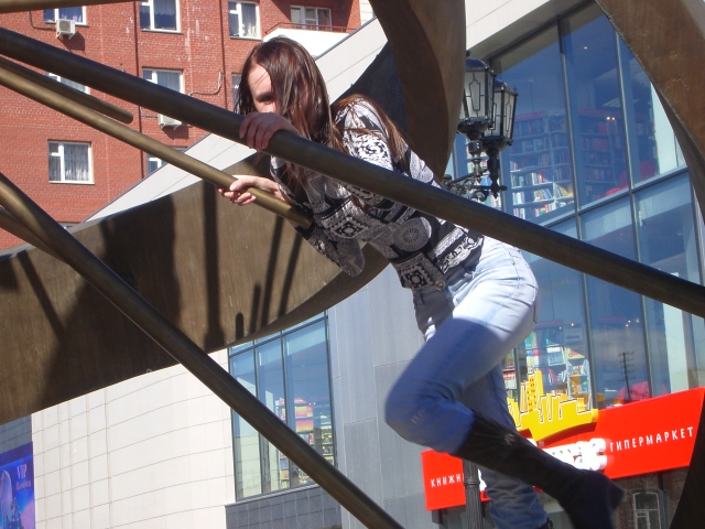 Danili4 помагает Oksе залесть на дерево. А ада ест лединец