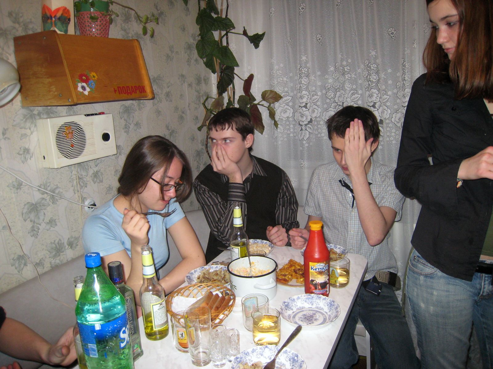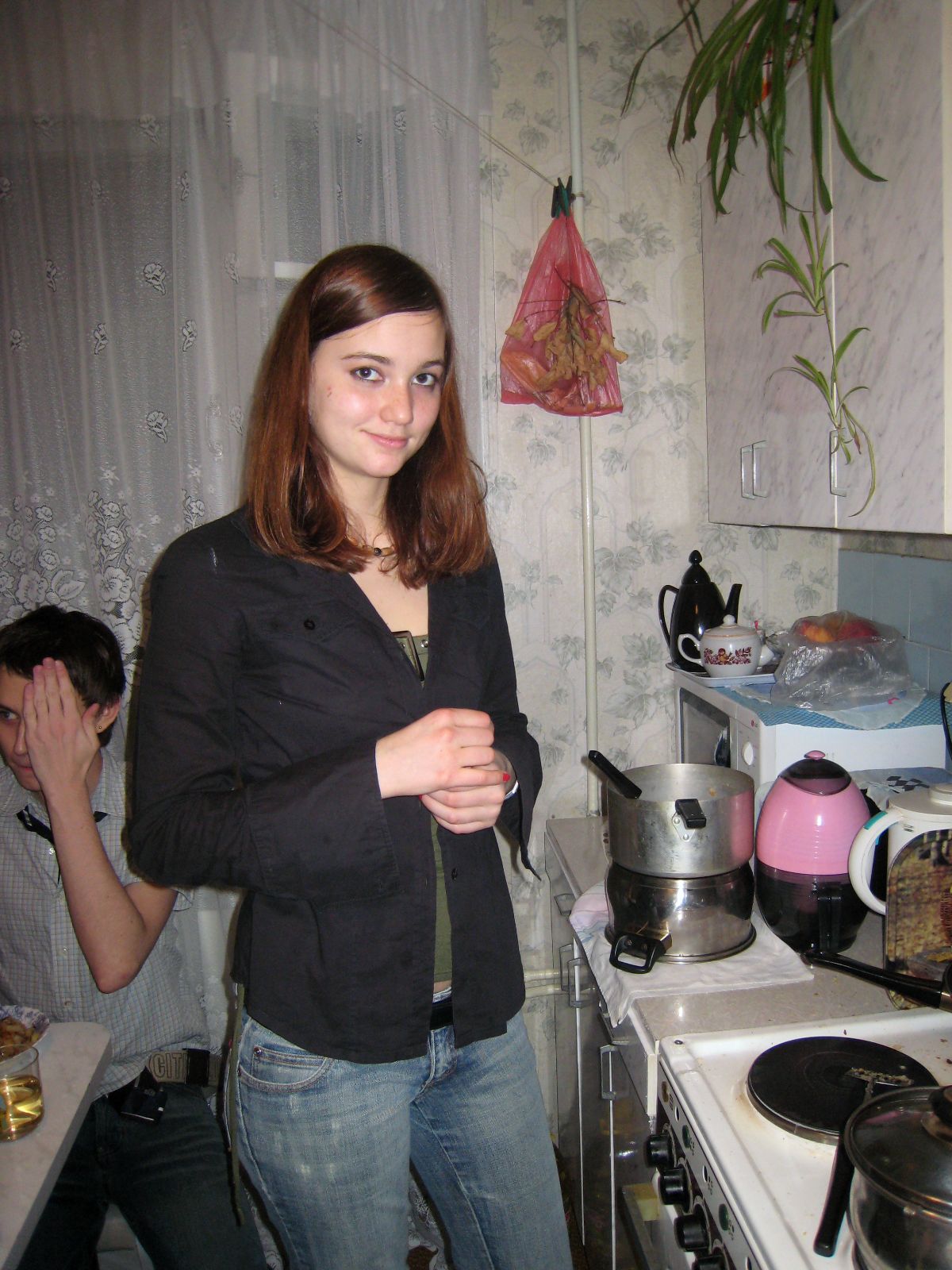 Иришка на своём излюбленном месте во время сходок - у плиты)мм..сколько мы уже за этот год наготовили)) ..а ещё обратите внимание на выражение лица Славы, если он не удалит эту фотку..)
