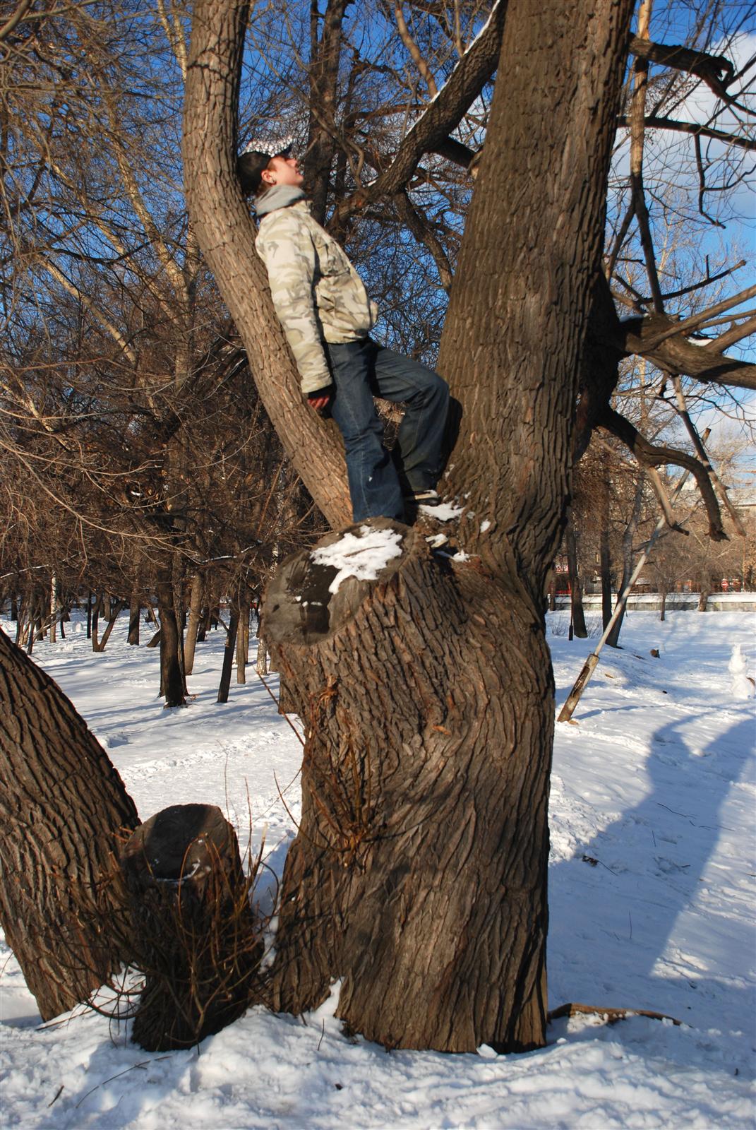 потопали в парк... саша залез на дерево...